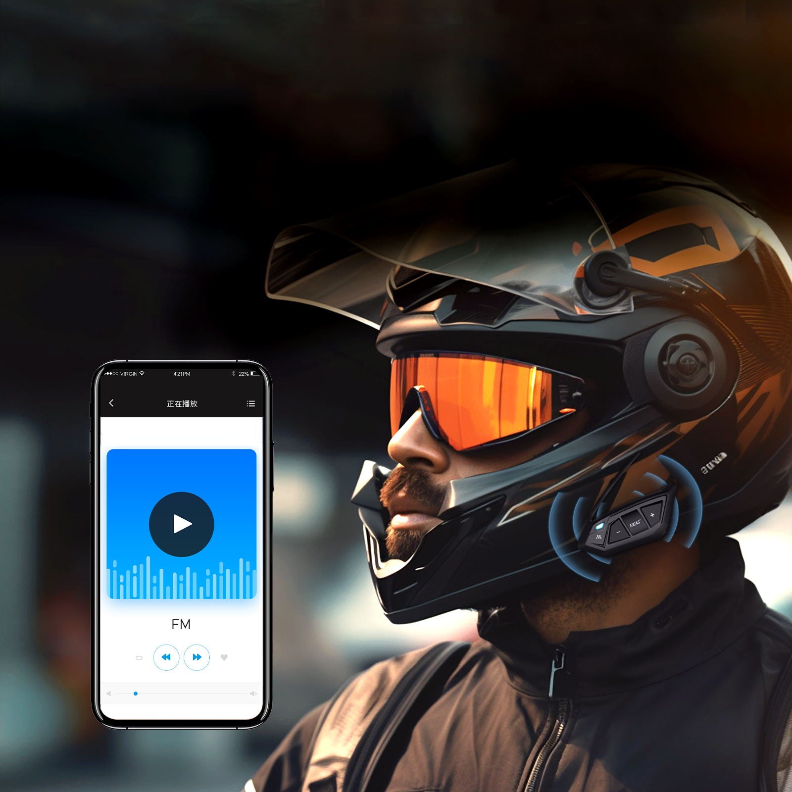 Built-in FM radio with the ability to use intercom and FM simultaneously.