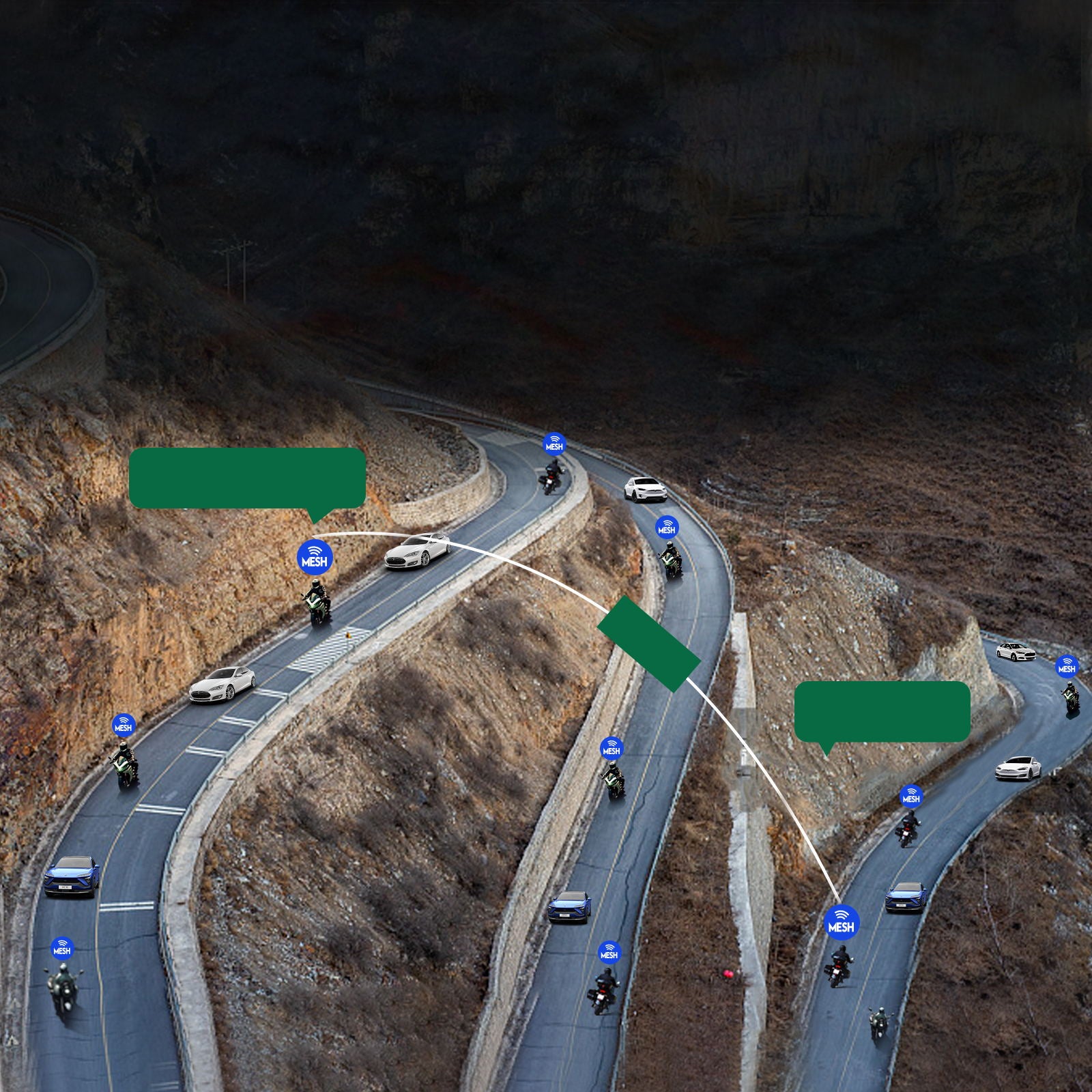 In congested environments such as highways with high traffic flow, the MS20 has strong penetratingpower and good signal stability. 4 machines at the farthest point from the occluded object Mesh intercom distance is about 2000m, 20 sets of MS20 Mesh intercom distance is within a circle with a diameter of 1500m