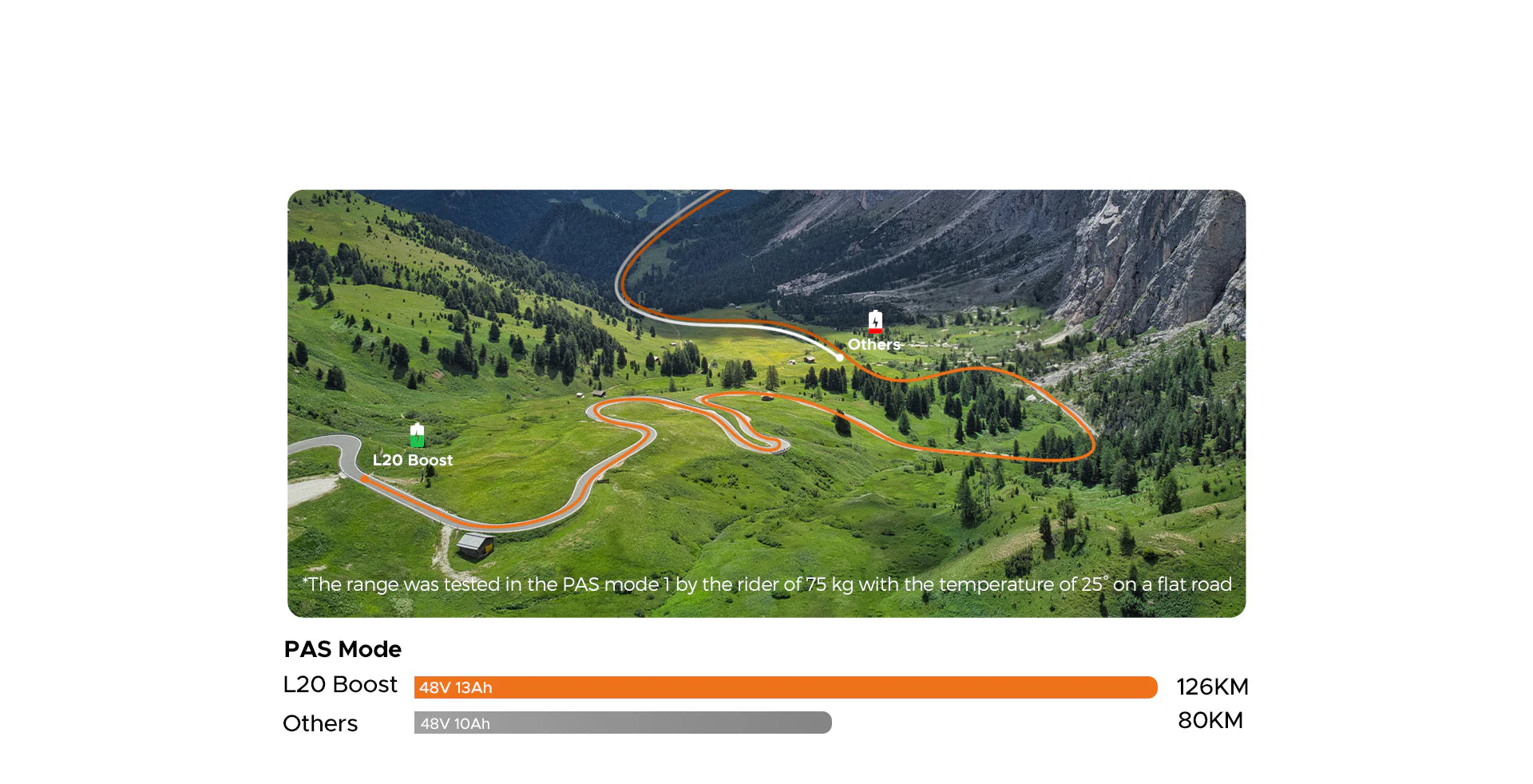 Range: 126 km (The actual distance will vary due to rider weight and road conditions)