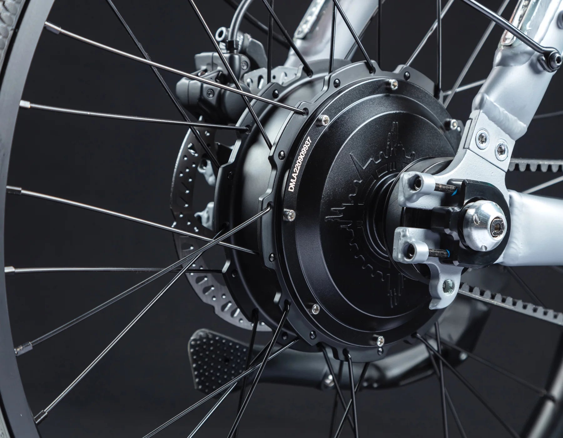 A cleaner and maintenance-free solution for your rides thanks to the Belt Drive transmission.Unlike the traditional chain, which requires regular cleaning and lubrication, the Belt Drive uses a continuous loop of synthetic material, often reinforced with carbon fiber. This construction ensures that the belt is both durable and highly resistant to stretching, which means it seldom, if ever, needs to be adjusted after the initial setup.