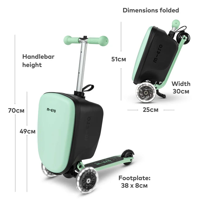 The new Micro Luggage Junior is a brilliant combination of a children's suitcase and a scooter, making it the perfect companion for the little ones. It can be ridden, pulled, or pushed, with the pushing mode offering a significant ergonomic advantage by protecting the child's wrists and muscles. Thanks to its compact dimensions, it’s a breeze to take on planes, trains, or in the car.
