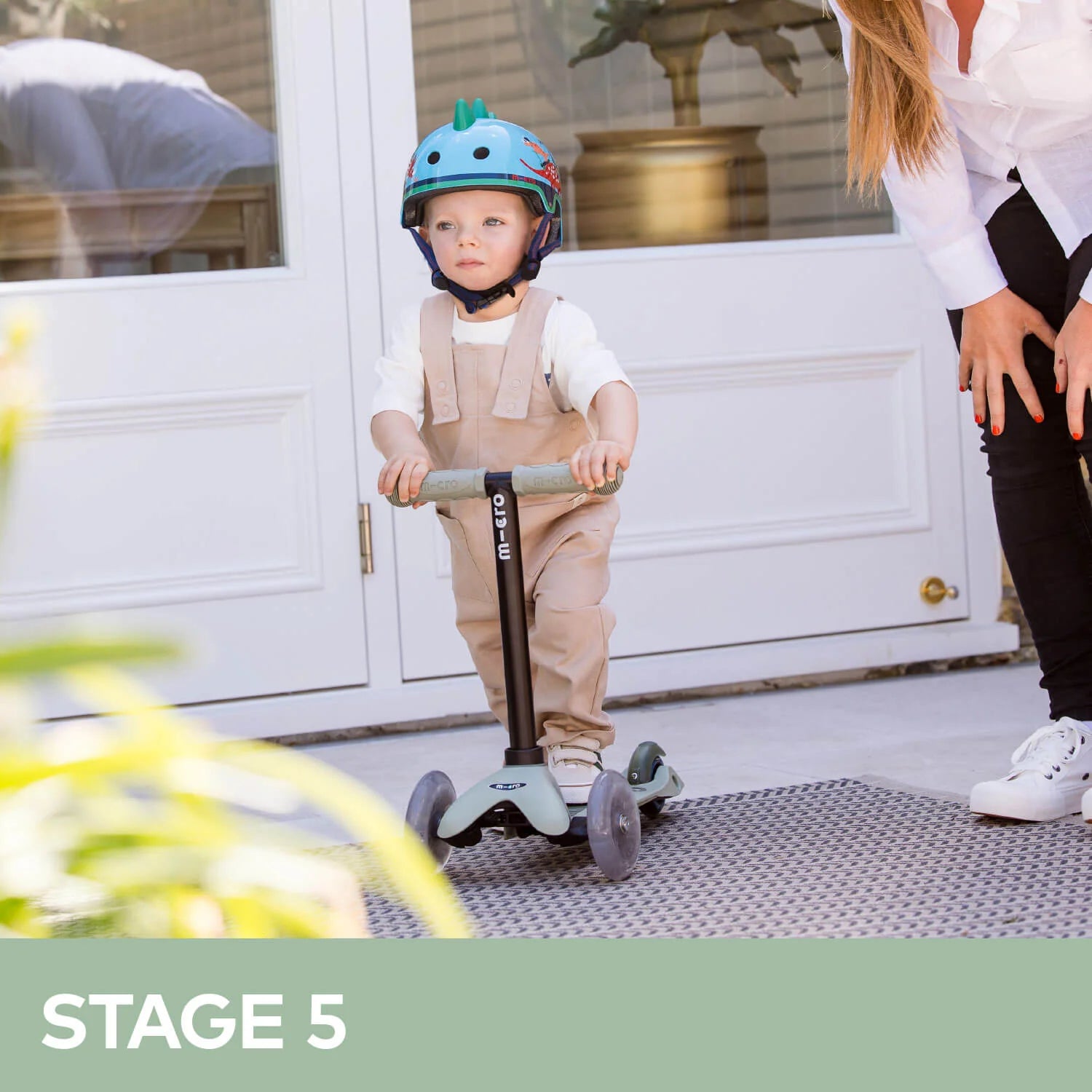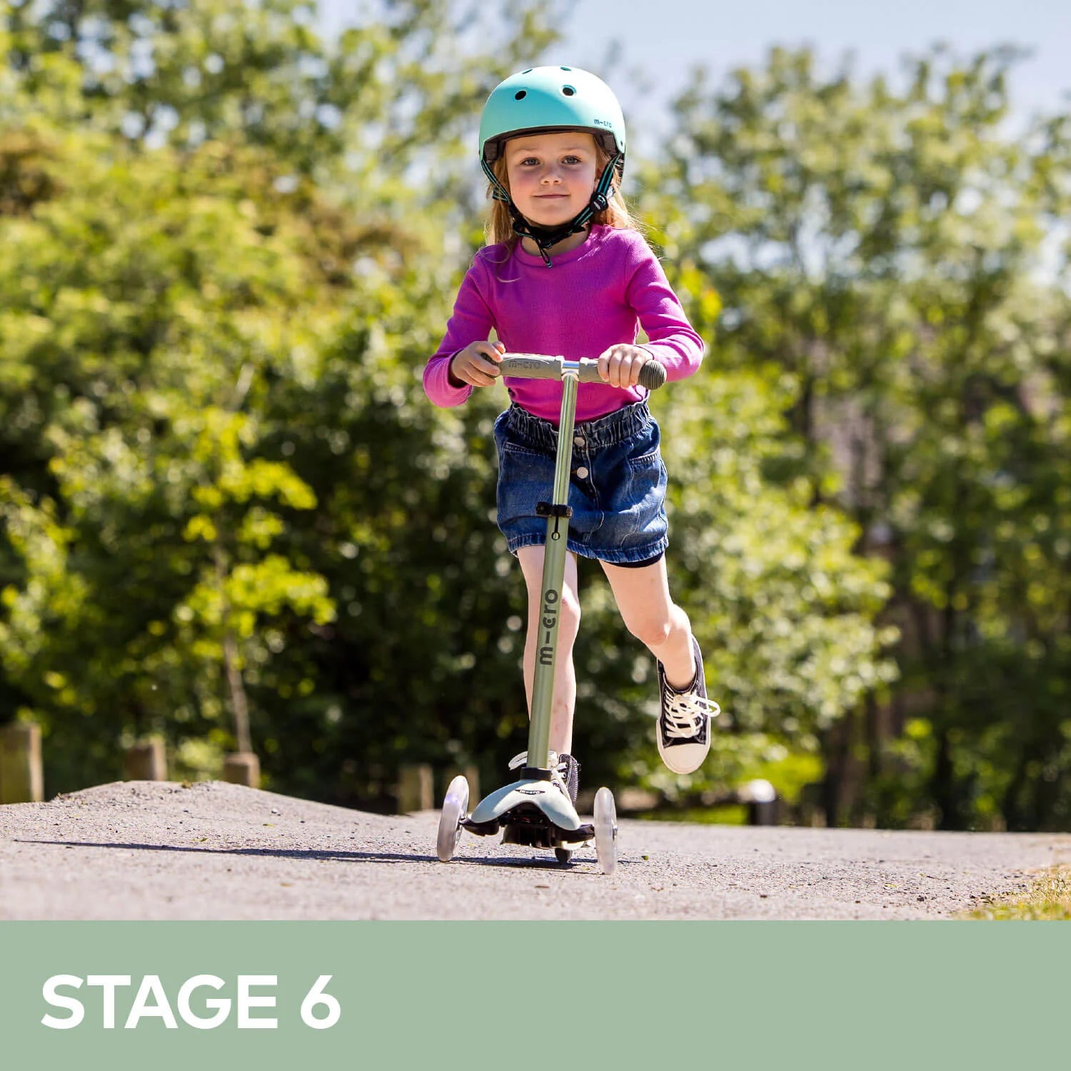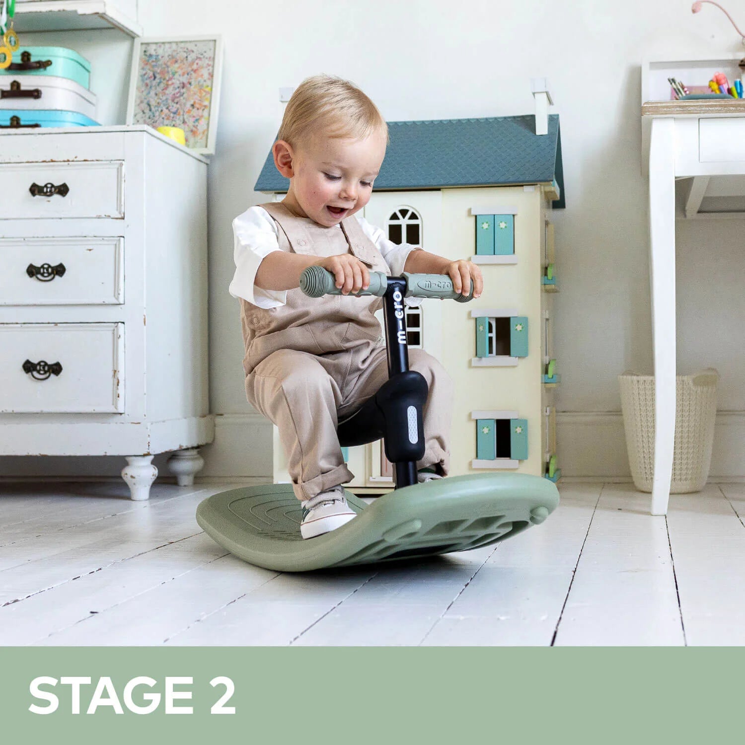 Stage 3 transforms the toy into a Mini Micro ride-on with a seat. This trike encourages independent travel and coordination, helping children gain control and confidence in their movements.